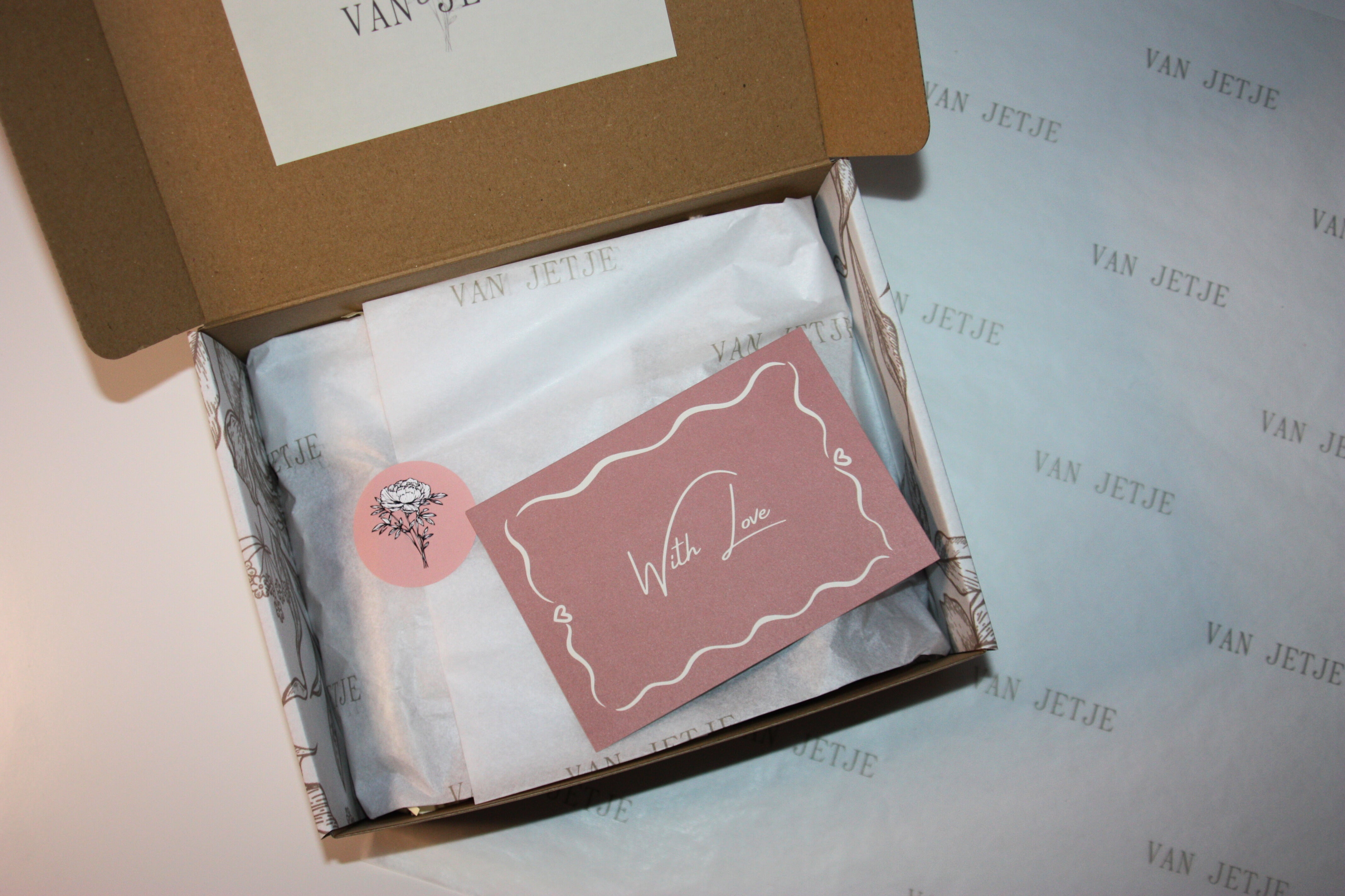 Onze pakketten met zorg zijn ingepakt, compleet met vloeipapier, zegelsticker, bedankkaartje en een fijne geur.